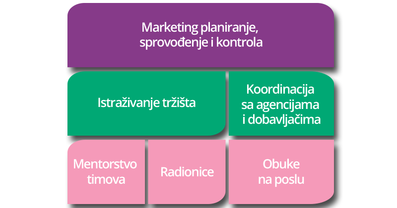 Želeli biste da imate nekoga ko će usko da sarađuje sa vašim marketing timom kako bi se osiguralo da su stekli sve potrebne veštine? Ili su vam potrebne radionice i programi mentorstva koji su rađeni po meri kako bi se vaši zaposleni razvijali kontinuirano? Ili je možda potrebno optimizirati saradnju i koordinaciju sa vašim marketing agencijama kako bi njihove performanse bile u skladu sa postavljenim ključnim indikatorima uspeha? Smatrate da vam je potreban neko će da vodi računa o svim podacima marketinga i potrošača koje skupljate u toku svih aktivnosti koje sprovodite?